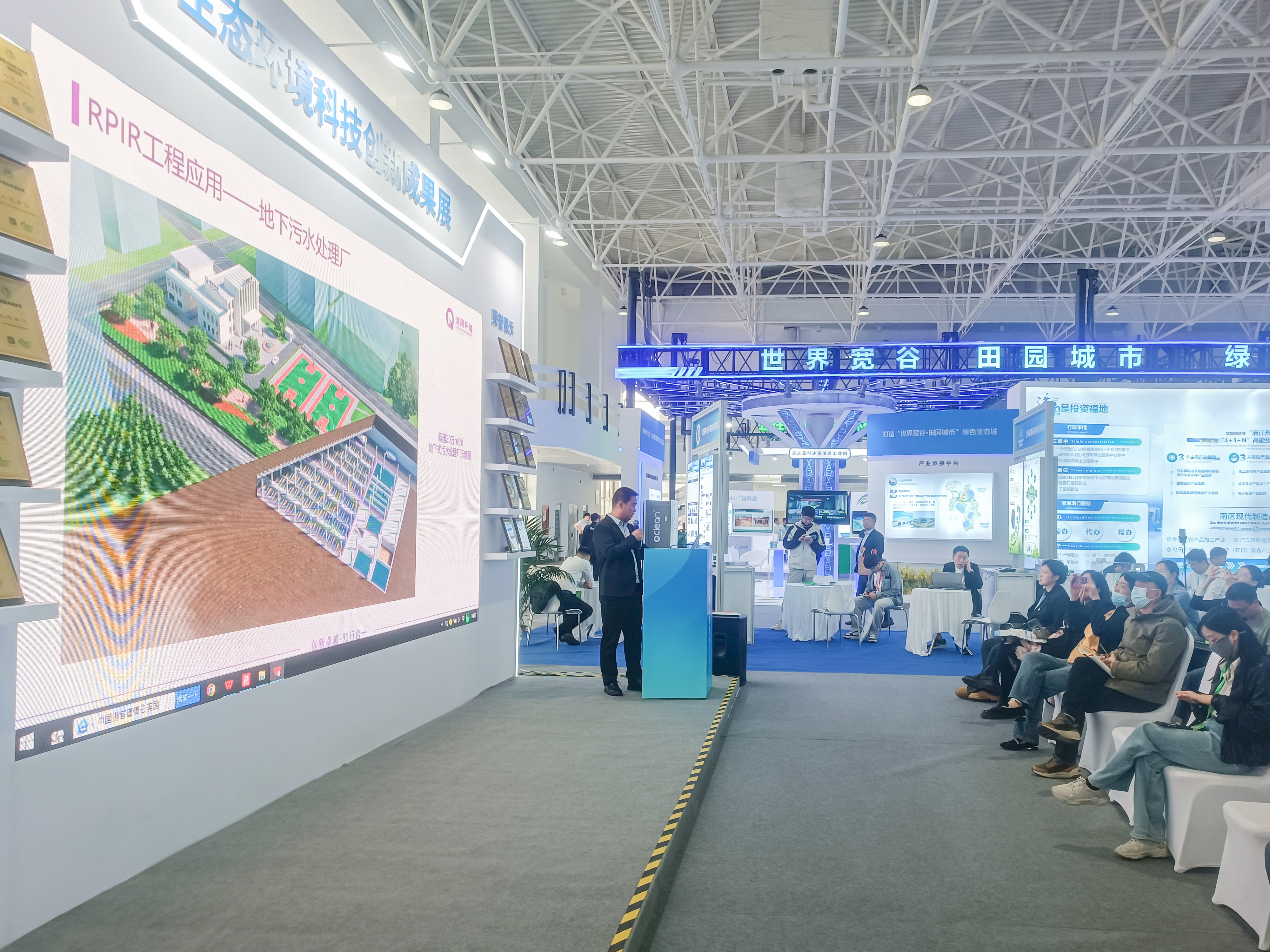 展会期间,清研环境向来访嘉宾及行业人士展示并详细介绍了公司的多项核心技术、业务模式及项目案例,并通过在线交互式的三维展示平台向来宾们展示了RPIR快速生化污水处理技术、T-Bic快速生化污水处理技术和RPIR一体机的应用项目三维模型,直观地让观众感受到了清研环境核心技术的独特优势和技术原理,赢得了现场观众的高度评价。